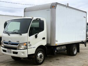 2017 Hino 195H with 138,000 miles, available in Ventura, CA. This pre-owned truck is in excellent condition and ready for its next owner. It features a powerful J05E-TP 4 Cylinder In-Line engine, delivering 210 horsepower and 440 lbs.-ft of torque at 1500 RPM, paired with a smooth-shifting Aisin A 465 6-Speed transmission. The truck has a 173-inch wheelbase and 145.4-inch cab to axle measurement, making it ideal for various hauling tasks. With a 30-gallon fuel tank and a GVWR of 19,500 lbs., this Hino 195H is both powerful and efficient.