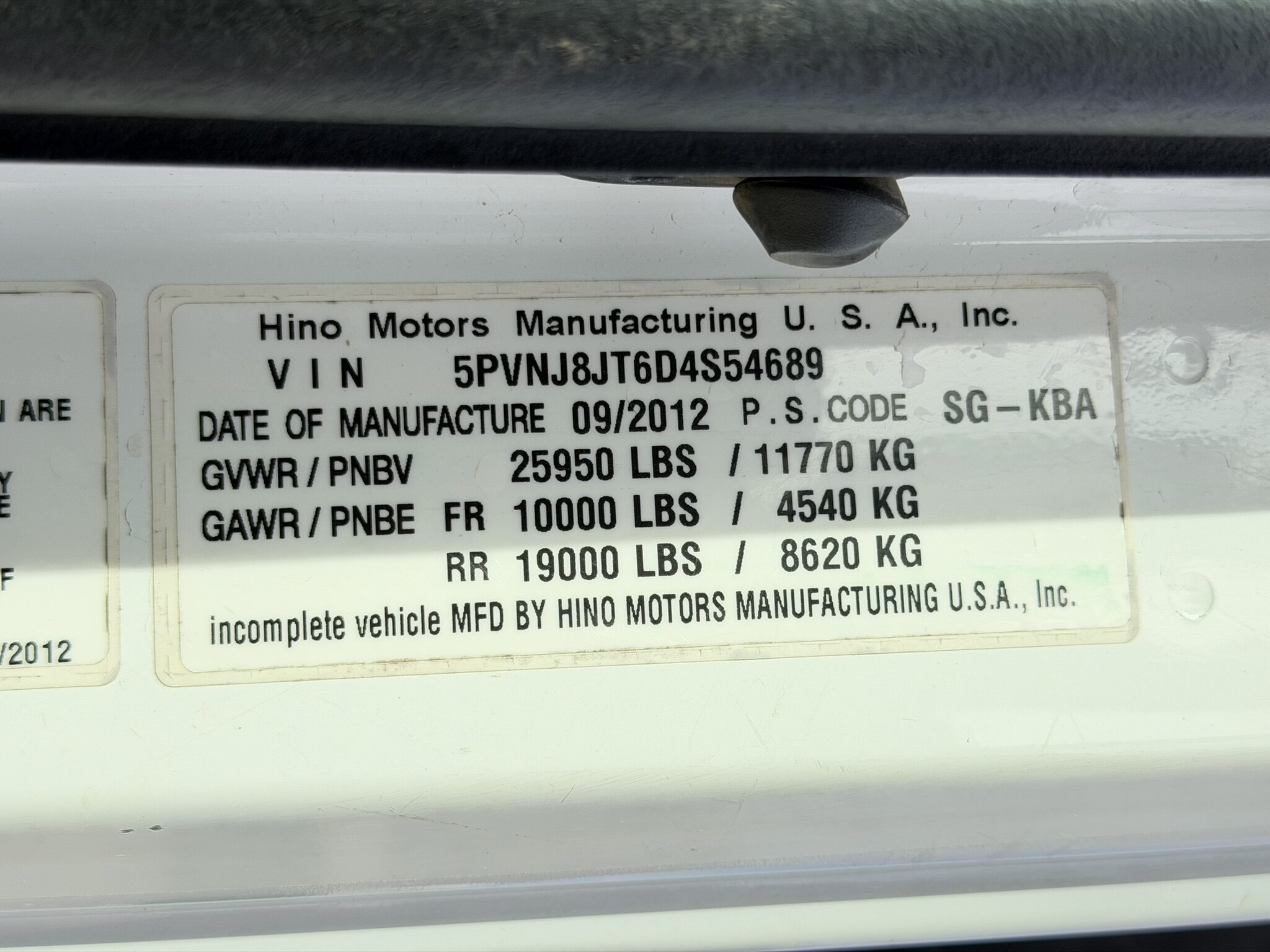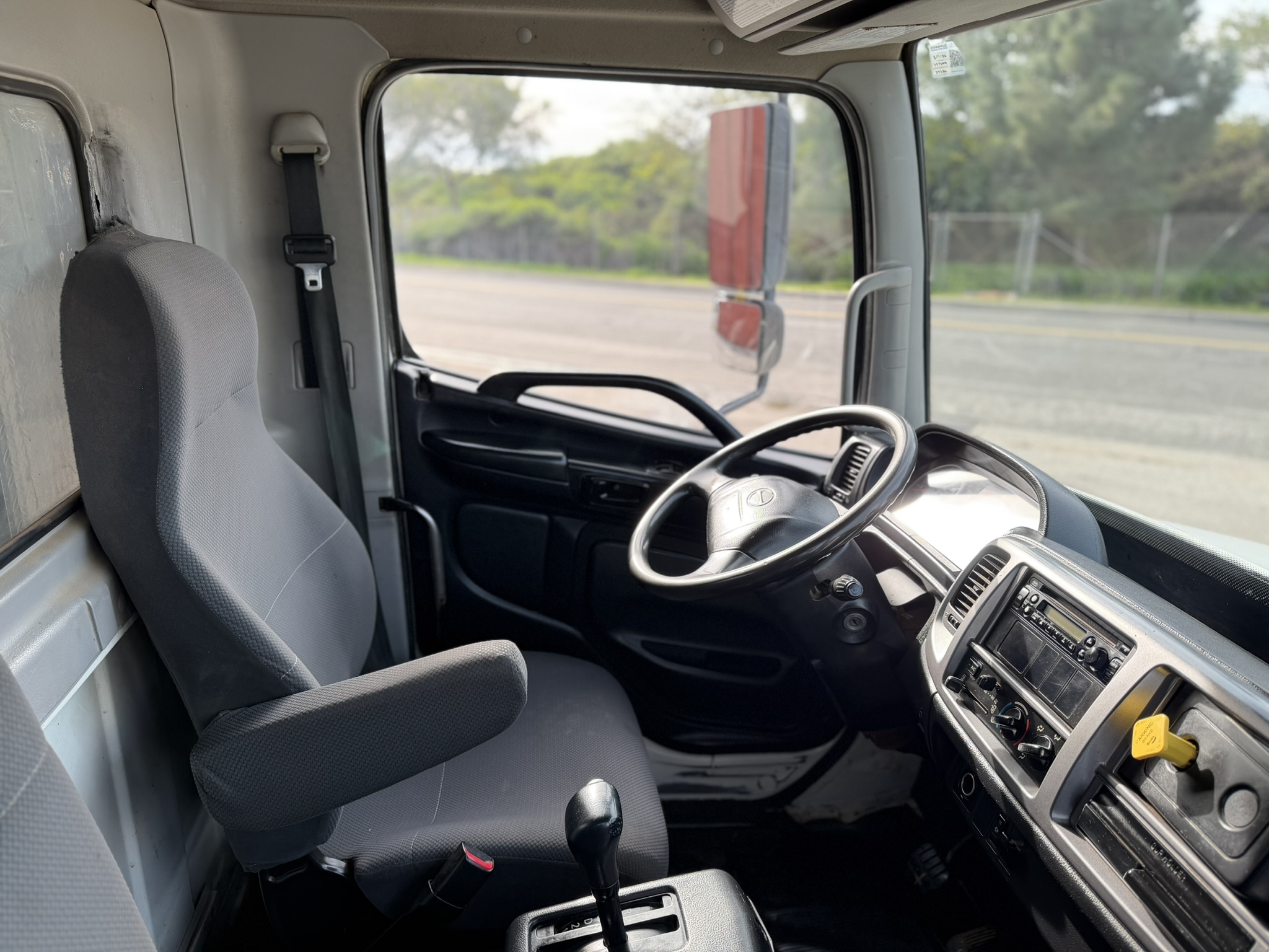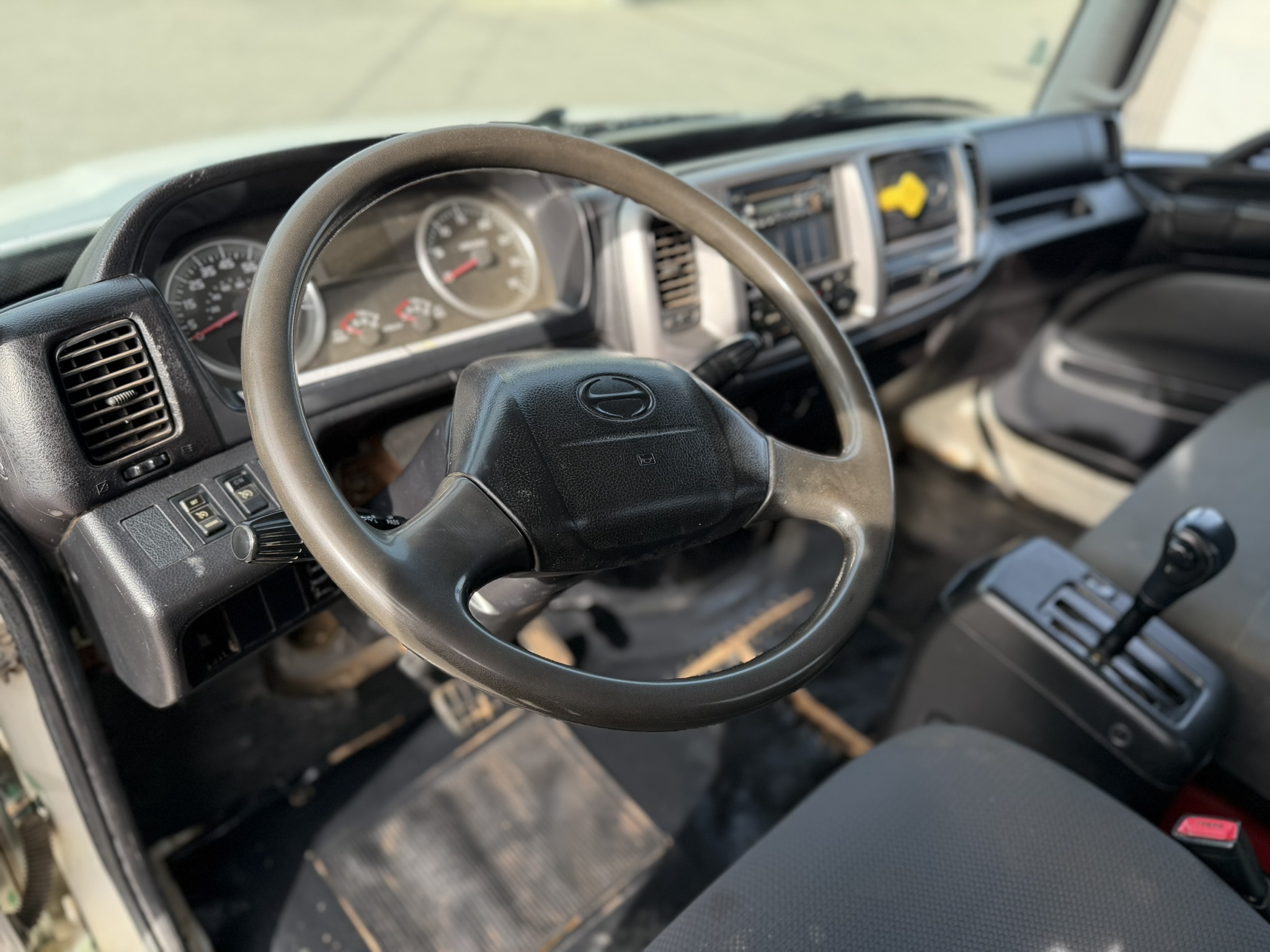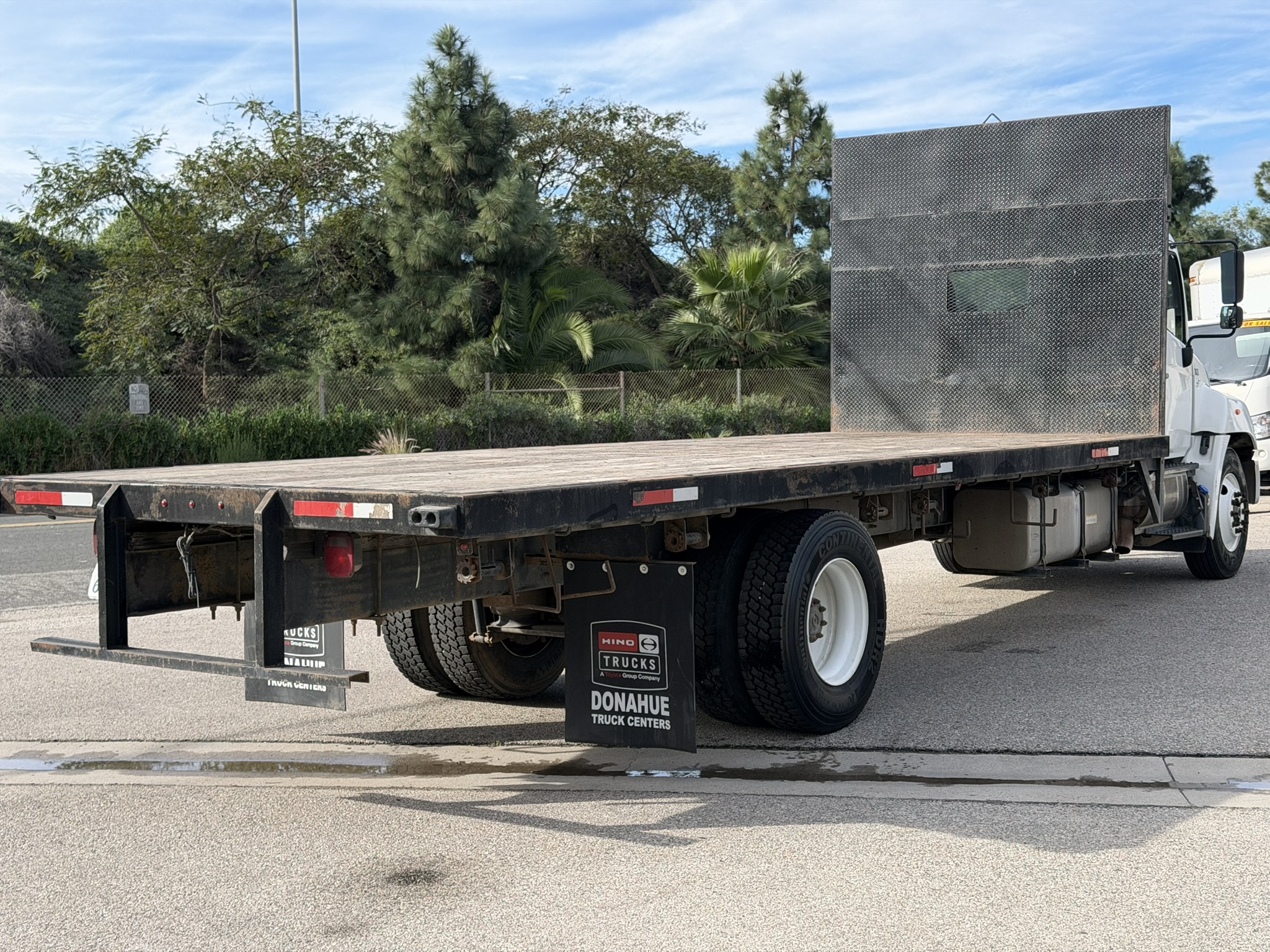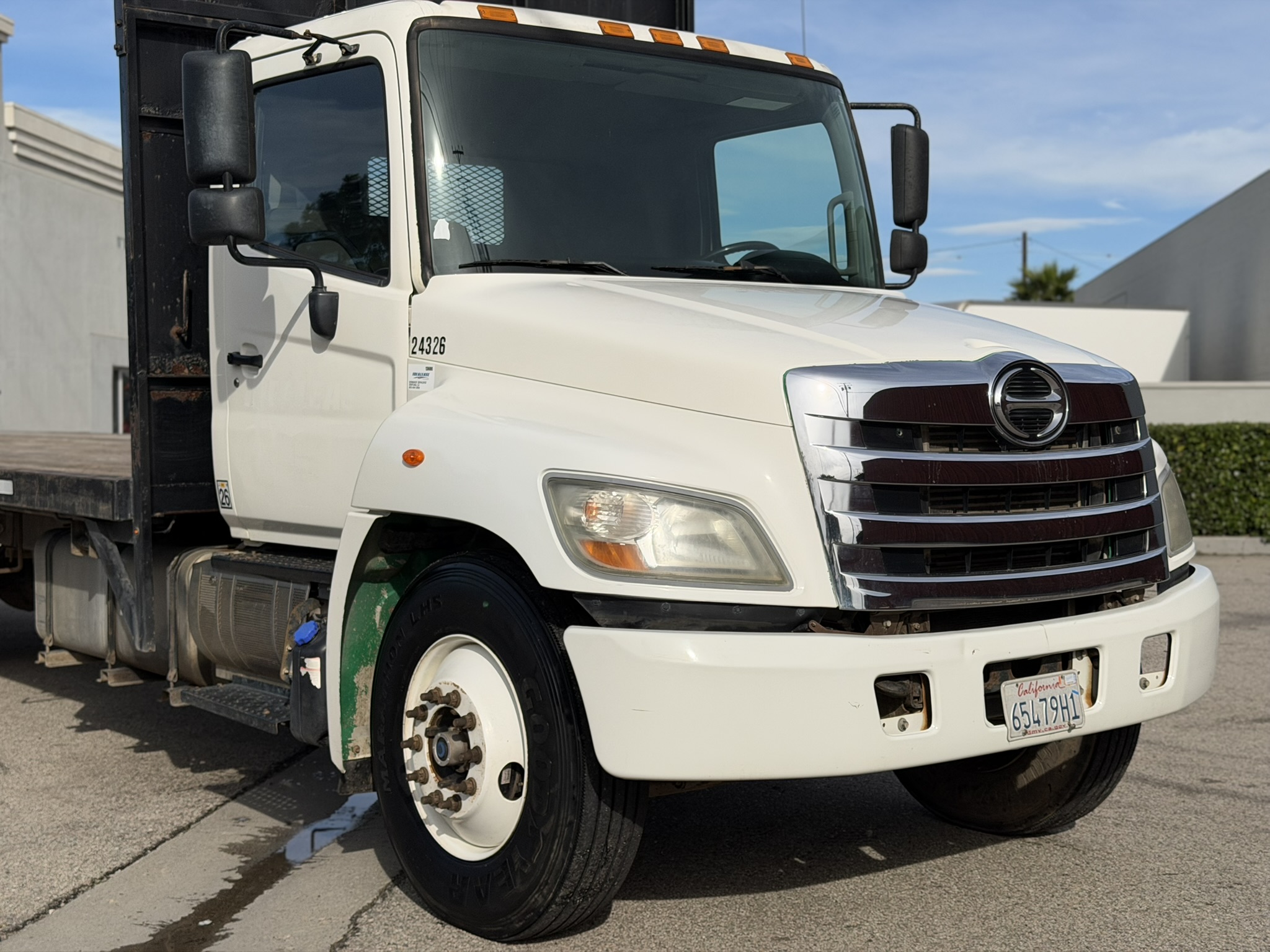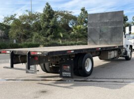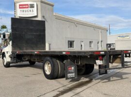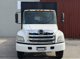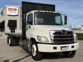 2013 Hino 268A Flatbed Stock #24326. This pre-owned truck has approximately 321,000 miles, an Allison 2500 RDS (PTO) transmission, air suspension, a 24 ft. flatbed, and a 25,950 lb. GVWR. It features a 253" wheelbase, 185.6" cab-to-axle, and a single 90-gallon fuel tank. Price coming soon; contact us for details or to schedule a viewing (805)644-3000.