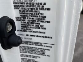 176" Wheel Base with 145.8" Cab to axle measurement, set up for 18 ft body. Upgraded flatscreen radio/backup camera compatibility.