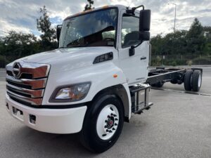 This Hino L7 is powered by a CARB Compliant Cummins B6.7 Diesel engine delivering 260HP and 660 lb.-ft. of torque at 2,500 RPM. Allison 2500 RDS transmission, Air Ride Suspension leaf spring suspension, 90-gallon fuel tank, 271” WB with 203.6" cab to axle which can accommodate a 24-26 FT Body. Call (805) 644-3000 for more information or to schedule a test drive.