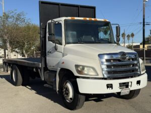 This 2015 Hino 268A Stock #1716 comes equipped with an 18-foot 2022 model year flatbed body and a Palfinger PLR 25 TukAway liftgate, offering a lift capacity of 2,500 lbs. It features a single 90-gallon fuel tank and rides on air bag suspension for enhanced comfort and stability. Powered by the reliable Hino J08E Japanese diesel engine, known for its long service life, this truck shows approximately 236,000 miles on the odometer. It’s paired with an Allison 2200 RDS automatic transmission and has a GVWR of 25,950 lbs.